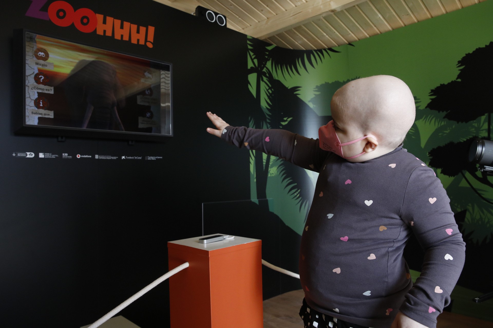 Presentació Projecte Zoohhh! Mobile Hospital Sant Joan de Déu. Font: La Caixa Impulsat per Mobile World Capital Barcelona (MWCapital), juntament amb el Zoo de Barcelona, l'Hospital Sant Joan de Déu Barcelona, Vodafone i Fundació "la Caixa", el projecte compta també amb la col·laboració del Departament de la Vicepresidència i de Polítiques Digitals i Territori i Fundació El Somni dels Nens. La participació d'institucions, empreses i entitats de diferents sectors permet contribuir des de diferents àmbits a la digitalització dels entorns hospitalaris i del sector de la salut. El secretari de Polítiques Digitals de la Generalitat, David Ferrer, que ha participat en la presentació del projecte, ha destacat que "projectes com aquest donen tot el sentit a l'aposta del Govern per la digitalització com a generadora d'oportunitats no només en l'àmbit econòmic sinó sobretot en el social i en el benestar de les persones. Fer arribar el zoo als infants hospitalitzats amb una experiència hologràfica lúdica i educativa com aquesta evidència els beneficis de la digitalització en els entorns hospitalaris i l'impacte de tecnologies avançades com la 5G en el sector Salut, on a més de permetre operacions en remot, ambulàncies connectades i teleassistència, entre d'altres, contribueix a alleujar els efectes de l'hospitalització i incidir així en una millor salut integral dels pacients". ZOOHHH! consisteix en una cabina que emula un mirador de natura equipat amb una pantalla hologràfica de 32 polzades Looking Glass de 8K que, amb la connectivitat 5G de Vodafone desplegada a les instal·lacions de l'Hospital Sant Joan de Déu, permet viure una experiència interactiva amb fauna d'una àrea geogràfica del món. La tecnologia volumètrica i estereoscòpica 3D de l'empresa Aumenta Solutions fa possible interactuar amb els models digitals d'aquests animals que, gràcies a un sistema de sensor Leap Motion, segueixen i reaccionen a la mà de l'usuari.
