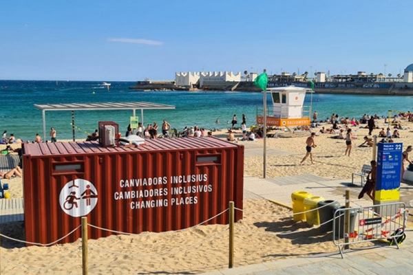 La platja de la Nova Icària de Barcelona estrena el primer canviador inclusiu de tot l'Estat