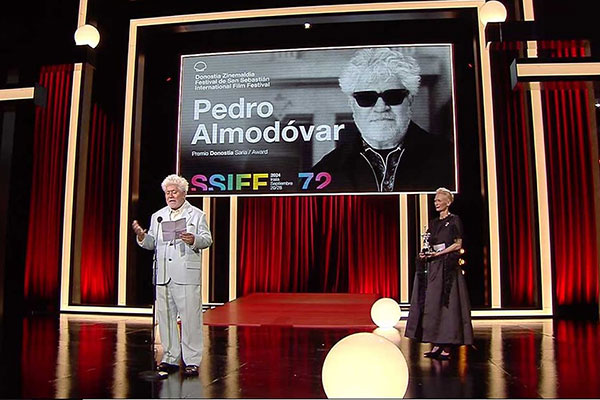 El cineasta Pedro Almodóvar ha rebut avui de mans de l'actriu Tilda Swinton el segon Premi Donostia de la 72a edició del Festival de Sant Sebastià. El guardó se li va entregar el mateix dia que el cineasta manxec feia ...