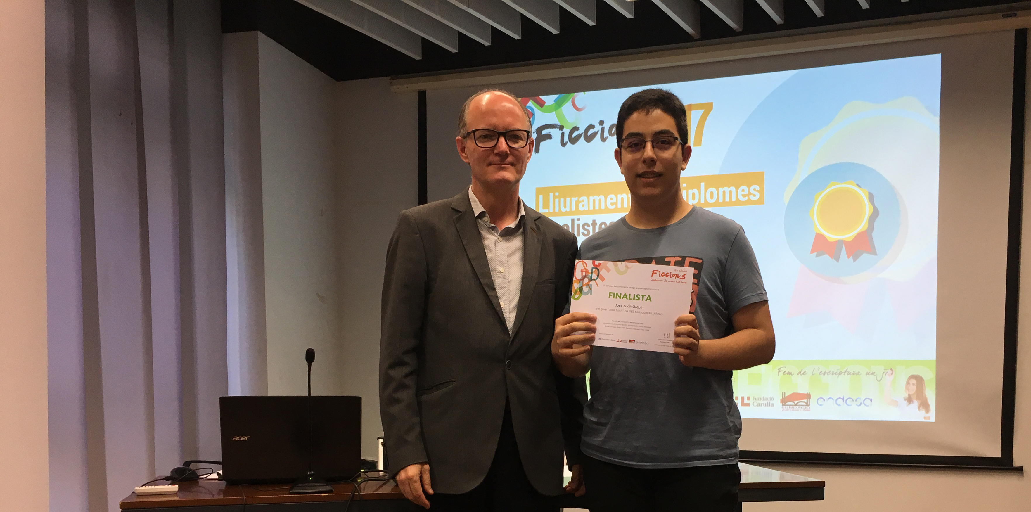 | | El grup Jose Such recull el diploma que l'acredita com a Finalista de Ficcions 2017. AMIC |